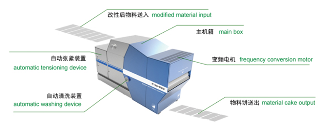 公司根據(jù)西方發(fā)達(dá)國(guó)家提出的污泥處理方案,結(jié)合我國(guó)國(guó)情和節(jié)能減排政策在學(xué)習(xí)和研究同行有關(guān)污泥處理方案的基礎(chǔ)上,集眾家之所長(zhǎng),在上海交大、上海同濟(jì)大學(xué)等科研院校的幫助下,摸索出了一整套適合我國(guó)國(guó)情的污泥處理適用型新方案——污泥表面量化破壁改性與機(jī)械擠壓脫水集成方案,獲得含固率較高的泥餅,從而實(shí)現(xiàn)泥水分離,并在關(guān)聯(lián)節(jié)點(diǎn)做了不斷優(yōu)化完善,目前已形成4種規(guī)格型號(hào)系列,以適應(yīng)不同的污泥處理量及客戶不同的需求。 KTSD脫水機(jī)分低壓,中壓,高壓,超高壓四個(gè)壓濾區(qū)壓濾動(dòng)作均由氣動(dòng)元件自動(dòng)控制,變頻調(diào)速根據(jù)產(chǎn)量和含水率要求進(jìn)行調(diào)節(jié),此壓濾設(shè)備改變了傳統(tǒng)意義上的污水凝聚后的壓濾而是膏糊狀類污泥直接壓濾的格局。