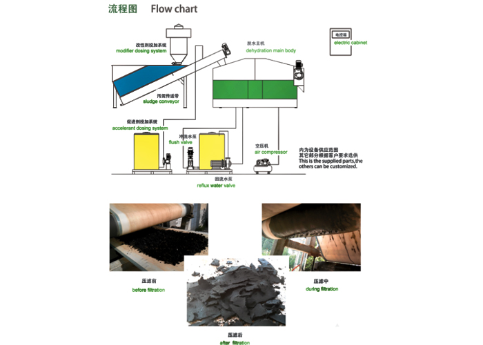 設(shè)備特點(diǎn):可以直接與原始污泥出口對(duì)接,不另行配置,直接連接,從進(jìn)料到出泥餅幾分鐘完成,從而達(dá)到不間斷連接生產(chǎn)的目的不需要預(yù)留中間堆放場(chǎng)地,大大減少了污泥處理處置過(guò)程的投資、運(yùn)營(yíng)成本和環(huán)境危害。